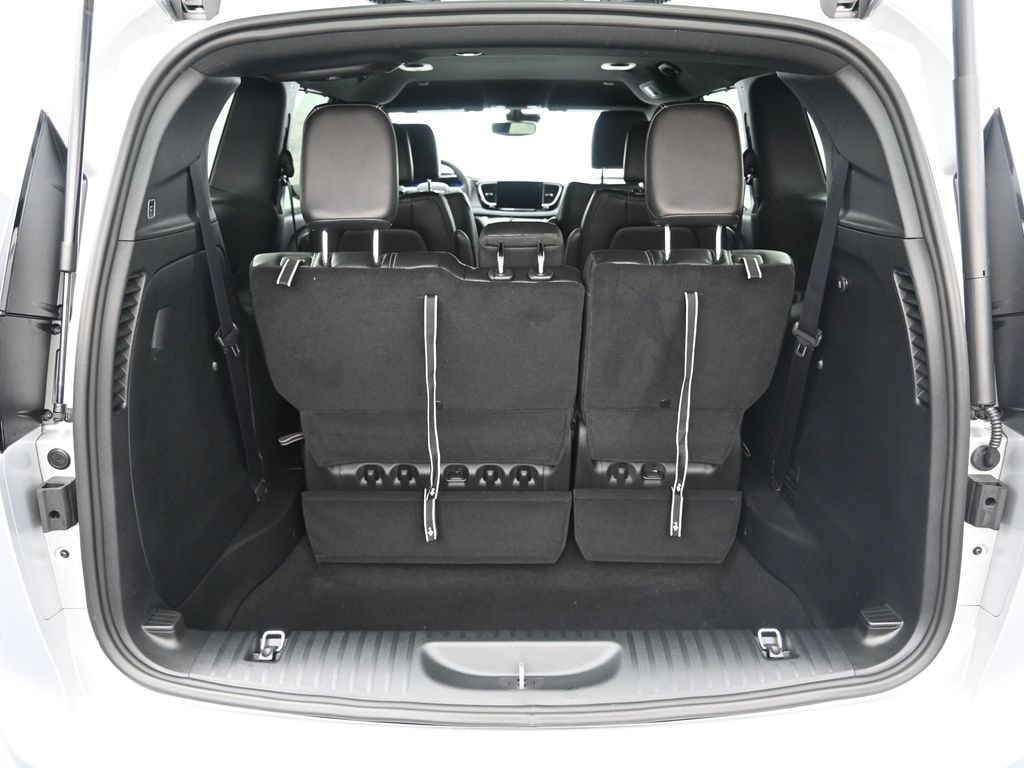 Quick Order Package 27L, Safety Sphere (360 Surround View Camera System and ParkSense Front/Rear Park Assist with Stop), 10.1" Touchscreen Display, 17" x 7.0" Aluminum Wheels, 3.25 Axle Ratio, 3rd row seats: split-bench, 4-Wheel Disc Brakes, 4G LTE Wi-Fi Hot Spot, 6 Speakers, ABS brakes, Air Conditioning, Alloy wheels, AM/FM radio: SiriusXM, Apple CarPlay, Apple CarPlay/Android Auto, Auto-dimming Rear-View mirror, Automatic temperature control, Black Seats, Brake assist, Bumpers: body-color, Caprice Leatherette Bucket Seats, Compass, Connectivity - US/Canada, Delay-off headlights, Disassociated Touchscreen Display, Driver door bin, Driver vanity mirror, Driver's Seat Mounted Armrest, Dual front impact airbags, Dual front side impact airbags, Electronic Stability Control, Emergency communication system: Chrysler Connect, For Details, Visit DriveUconnect.com, Four wheel independent suspension, Front anti-roll bar, Front Bucket Seats, Front dual zone A/C, Front fog lights, Front reading lights, Fully automatic headlights, Garage door transmitter, Google Android Auto, GPS Antenna Input, Heated door mirrors, Heated front seats, Heated steering wheel, Illuminated entry, Integrated Active Noise Cancellation, Integrated Center Stack Radio, Knee airbag, Low tire pressure warning, Memory seat, Occupant sensing airbag, Outside temperature display, Overhead airbag, Overhead console, Panic alarm, ParkView Rear Back-Up Camera, Passenger door bin, Passenger seat mounted armrest, Passenger vanity mirror, Power door mirrors, Power driver seat, Power Liftgate, Power steering, Power windows, Radio data system, Radio: Uconnect 5 with 10.1" Display, Rain sensing wipers, Rear air conditioning, Rear reading lights, Rear window defroster, Rear window wiper, Reclining 3rd row seat, Remote keyless entry, Security system, Speed control, Split folding rear seat, Spoiler, Steering wheel mounted audio controls, Tachometer, Telescoping steering wheel, Tilt steering wheel, Touring Suspension, Traction control, Trip computer, Turn signal indicator mirrors, USB Host Flip, Variably intermittent wipers, Voltmeter, and Wheels: 18" x 7.5" Polished Aluminum Design 1.