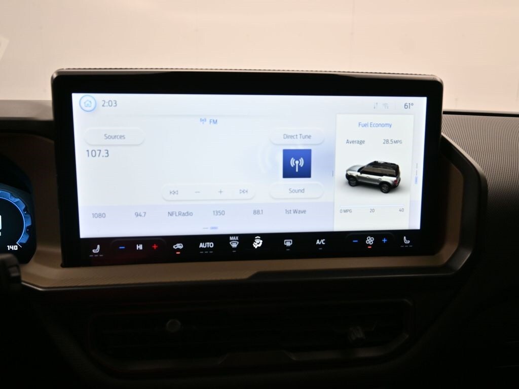 Bluetooth, Back up camera , Black Diamond Off-Road Package (110V/400W AC Power Outlet, 2nd Row Carpeted Seatback, Auxiliary Switches & Wiring, Brush Guard, Cargo Management System (Shelf/Divider/Table), Cargo Mat, Class II Trailer Tow Pack w/Trailer Sway Control, Fender Tie Downs, Front & Rear Black Bumpers, Interior Grab Handle, Recovery Hooks, and Wheels: 17" Carbonized Gray Painted Aluminum), Convenience Package (Front Driver/Passenger Seat Back Map Pockets, Heated 8-Way Power Driver's Seat, LED Fog Lamps, Premium Wrapped Steering Wheel, and Universal Garage Door Opener (UGDO)), Equipment Group 200A, 4-Wheel Disc Brakes, 6 Speakers, ABS brakes, Air Conditioning, Alloy wheels, AM/FM radio: SiriusXM, AM/FM Stereo, Auto High-beam Headlights, Automatic temperature control, Brake assist, Cloth w/Easy-to-Clean Front Bucket Seats, Compass, Delay-off headlights, Driver door bin, Driver vanity mirror, Dual front impact airbags, Dual front side impact airbags, Electronic Stability Control, Emergency communication system: SYNC 4 911 Assist, Four wheel independent suspension, Front anti-roll bar, Front Bucket Seats, Front Center Armrest, Front reading lights, Fully automatic headlights, Heated door mirrors, Illuminated entry, Knee airbag, Low tire pressure warning, Occupant sensing airbag, Outside temperature display, Overhead airbag, Overhead console, Panic alarm, Passenger door bin, Passenger vanity mirror, Power door mirrors, Power Moonroof, Power steering, Power windows, Radio data system, Rear anti-roll bar, Rear Parking Sensors, Rear reading lights, Rear seat center armrest, Rear window defroster, Rear window wiper, Remote keyless entry, Security system, SiriusXM, Speed control, Speed-sensing steering, Speed-Sensitive Wipers, Split folding rear seat, Steering wheel mounted audio controls, SYNC 4 w/Enhanced Voice Recognition, Tachometer, Telescoping steering wheel, Tilt steering wheel, Traction control, Trip computer, Variably intermittent wipers, and Wheels: 17" Carbonized Gray-Painted Aluminum.