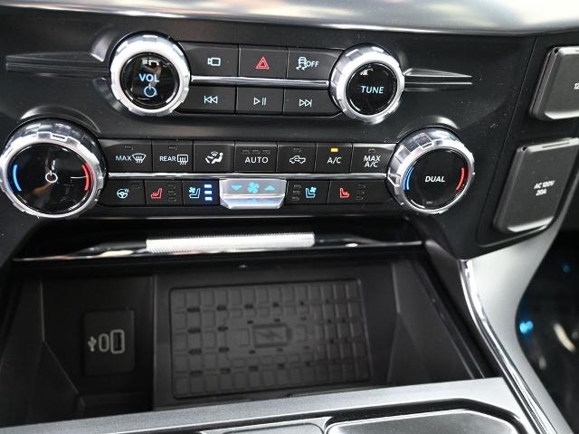Bluetooth, Back up camera , Equipment Group 502A High (Wheels: 20" Chrome-Like PVD), FX4 Off-Road Package (4x4 FX4 Off-Road Bodyside Decal, Hill Descent Control, Monotube Rear Shocks, Off-Road Tuned Front Shock Absorbers, Rock Crawl Mode, and Tray Style Floor Liner w/o Carpet Mats), Mobile Office Package (Console Worksurface, Partitioned Lockable Rear Storage, and Wireless Charging), Tow/Haul Package, 3.5L PowerBoost Full-Hybrid V6, 4WD, 4-Wheel Disc Brakes, 8 Speakers, ABS brakes, ActiveX Trimmed Bucket Seats, Adjustable pedals, Air Conditioning, Alloy wheels, AM/FM radio: SiriusXM with 360L, Auto High-beam Headlights, Auto-dimming door mirrors, Auto-dimming Rear-View mirror, Automatic temperature control, Brake assist, Bumpers: chrome, Chrome wheels, Compass, Delay-off headlights, Driver door bin, Driver vanity mirror, Dual front impact airbags, Dual front side impact airbags, Electronic Stability Control, Emergency communication system: SYNC 4 911 Assist, Front anti-roll bar, Front Bucket Seats, Front Center Armrest, Front dual zone A/C, Front fog lights, Front reading lights, Front wheel independent suspension, Fully automatic headlights, Garage door transmitter, Heated door mirrors, Heated front seats, Heated steering wheel, Illuminated entry, Internet access capable: FordPass Connect 5G, Low tire pressure warning, Memory seat, Navigation system: Connected Navigation, Occupant sensing airbag, Outside temperature display, Overhead airbag, Overhead console, Panic alarm, Passenger door bin, Passenger vanity mirror, Pedal memory, Power door mirrors, Power driver seat, Power passenger seat, Power steering, Power windows, Radio data system, Radio: B&O Sound System by Bang & Olufsen, Rain sensing wipers, Rear reading lights, Rear seat center armrest, Rear step bumper, Rear window defroster, Remote keyless entry, Security system, Speed control, Split folding rear seat, Steering wheel mounted audio controls, SYNC 4 w/Enhanced Voice Recognition, Tachometer, Telescoping steering wheel, Tilt steering wheel, Traction control, Trip computer, Turn signal indicator mirrors, Variably intermittent wipers, Ventilated front seats, Voltmeter, and Wheels: 18" Chrome-Like PVD.