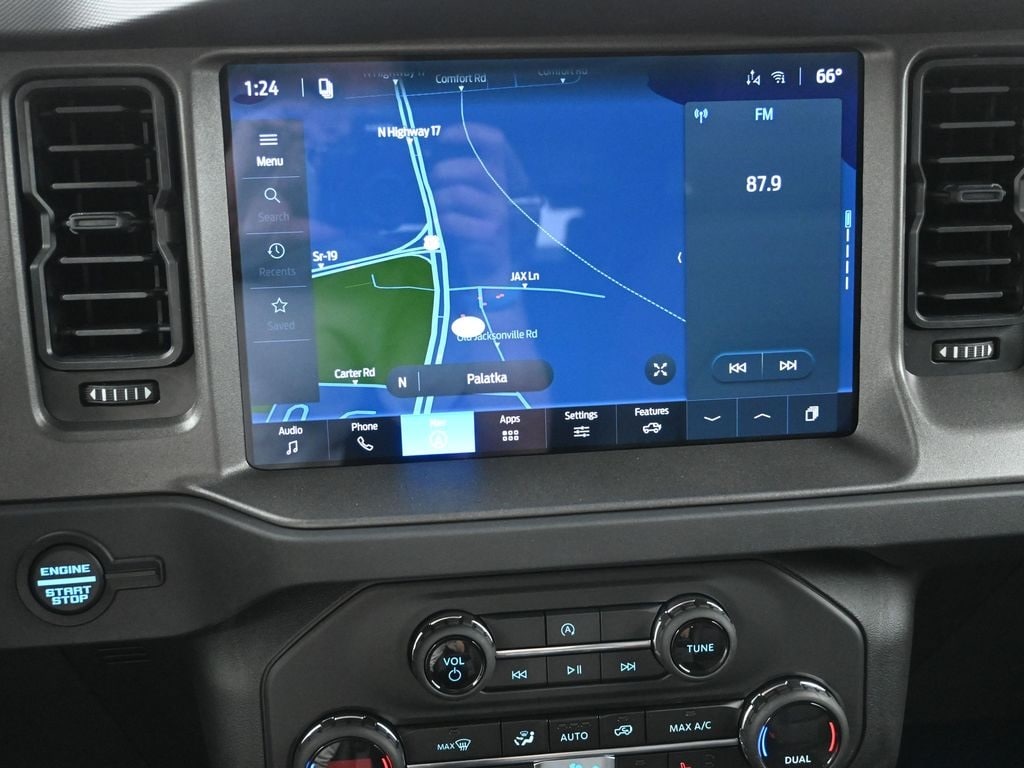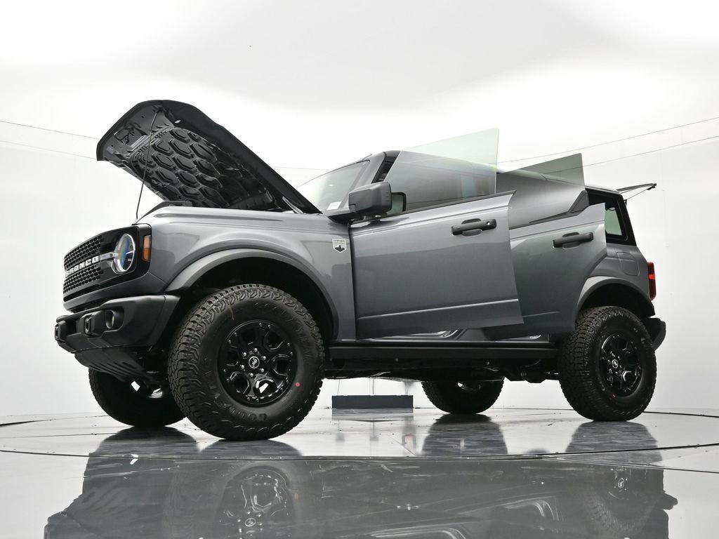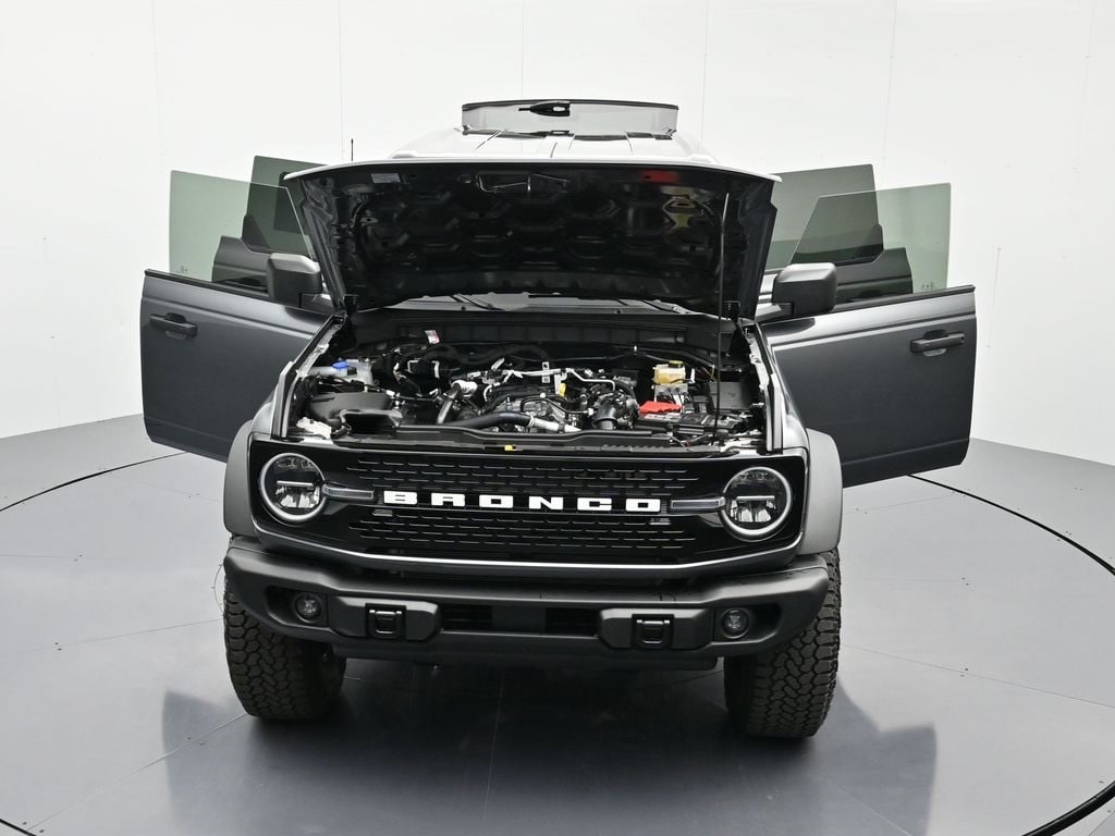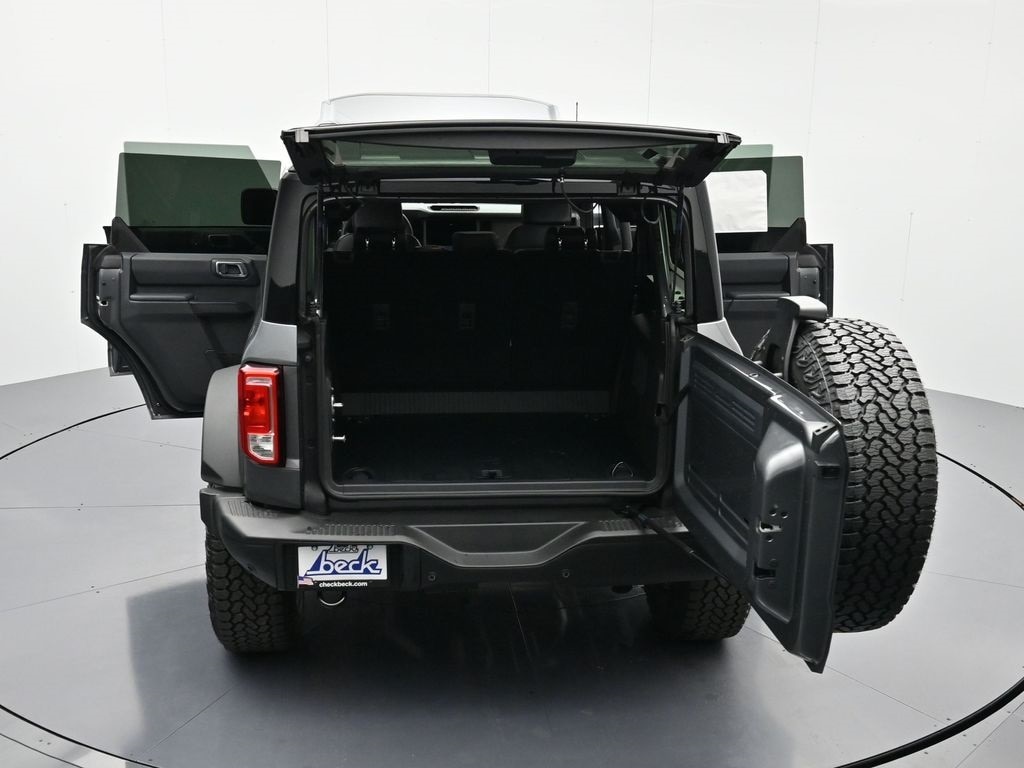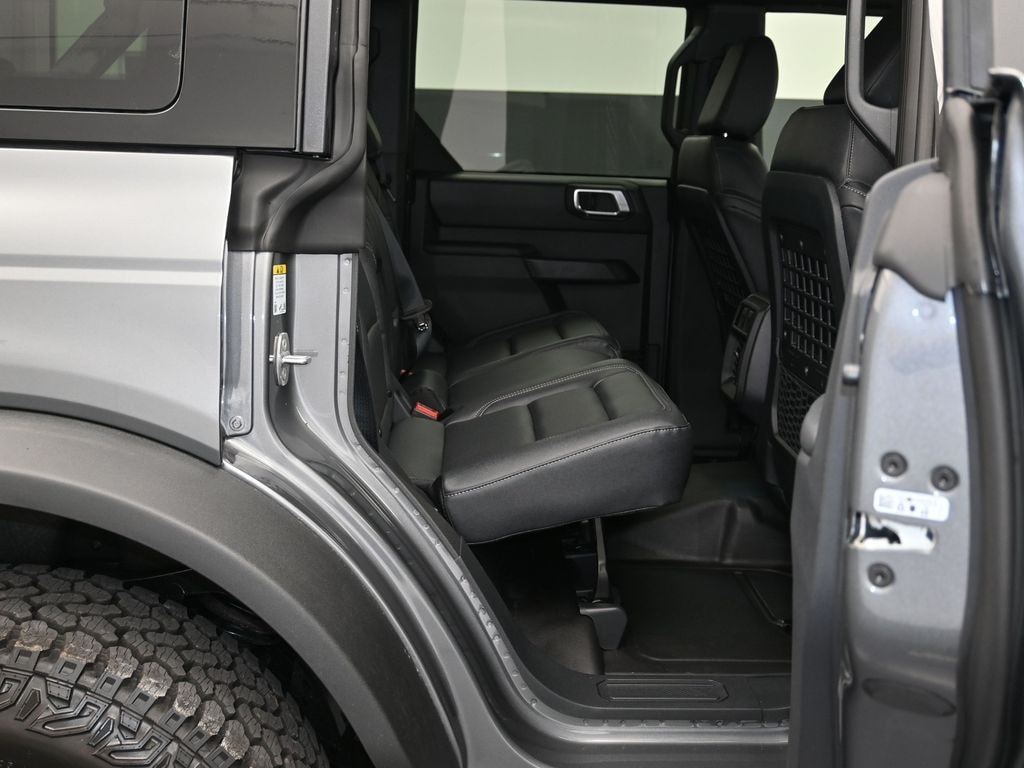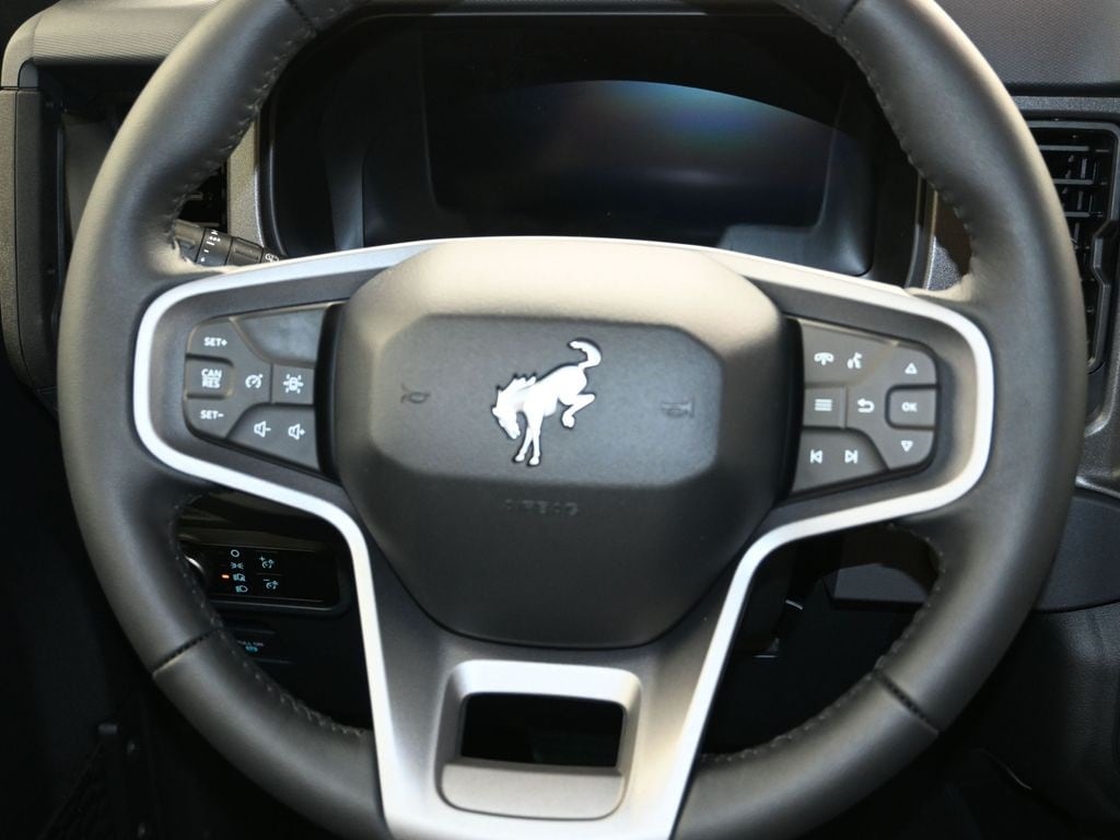 Bluetooth, Back up camera , Black Appearance Package (Black Molded-in-Color Door Handles, Black Molded-in-Color Fender Flares, Black Molded-in-Color Sideview Mirror Caps, and Black-Painted Molded-in-Color Grille), Black Diamond Package (Auxiliary Switches, LED Fog Lamps, Powder Coated Steel Front and Rear Bumpers, Rock Rails, Washout Capable Rubberized Flooring, and Wheels: 17" Black High Gloss-Painted Steel), Equipment Group 222A Mid Package (2-Door Intelligent Access with Lock/Unlock, AM/FM Stereo, Ambient Footwell Lighting, Cloth Bucket Seats, Connected Navigation, Driver and Front Passenger Illuminated Sliding Visor Vanity Mirrors, Dual Smart Charging USB Ports, Dual-Zone Electronic Automatic Temperature Control, Front Row Heated Seats, Pro Power Onboard - 400W, Rear Parking Sensors, SiriusXM with 360L, SYNC 4, and Wheels: 17" Carbonized Gray-Painted Aluminum), Ford Connectivity Package (1-Year Included), Sasquatch Package (High Clearance Fender Flares, High Clearance Suspension, Position-Sensitive Bilstein Shock Absorbers, and Wheels: 17" Matte Black Alloy), 4-Wheel Disc Brakes, 7 Speakers, ABS brakes, Air Conditioning, Alloy wheels, AM/FM radio: SiriusXM with 360L, Auto High-Beam Headlamps, Auto High-beam Headlights, BLIS Blind Spot Information System, Brake assist, Compass, Delay-off headlights, Driver door bin, Driver vanity mirror, Dual front impact airbags, Dual front side impact airbags, Electronic Stability Control, Emergency communication system: 911 Assist, Engine Block Heater, Exterior Parking Camera Rear, Front anti-roll bar, Front Bucket Seats, Front Center Armrest, Front reading lights, Front wheel independent suspension, Fully automatic headlights, Hard Top Sound Deadening Headliner, Heated door mirrors, Illuminated entry, Integrated roll-over protection, Lane-Keeping System, Low tire pressure warning, Occupant sensing airbag, Outside temperature display, Overhead airbag, Overhead console, Panic alarm, Passenger door bin, Passenger vanity mirror, Power door mirrors, Power steering, Power windows, Pre-Collision Assist with Automatic Emergency Braking, Radio data system, Rear-View Camera, Rear-Window Defroster and Washer, Remote keyless entry, Security system, Shadow Black Painted Hard Top, Speed control, Split folding rear seat, Steering wheel mounted audio controls, Tachometer, Telescoping steering wheel, Tilt steering wheel, Traction control, Trip computer, and Variably intermittent wipers.