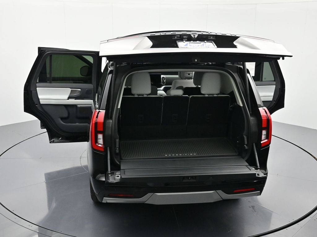 Bluetooth, Back up camera , Driver's Package (Radio: B&O Play Unleashed and SiriusXM with 360L), Equipment Group 600A Standard Package (2nd Row Power-Folding Captain's Chairs, 3.73 Axle Ratio, BlueCruise Equipped (90-Day Trial), Ford Digital Experience, Heated and Ventilated Leather Front Captain's Chairs, Power Tilt/Telescopic Steering Wheel with Memory, Radio: B&O Sound System by Bang and Olufsen, and Wheels: 20" x 8.5" Ebony Bright Machined Aluminum), Ford Connectivity Package (1-Time Purchase), Ford Connectivity Package (1-Year Included), 4WD, 10 Speakers, 3rd row seats: split-bench, 4-Wheel Disc Brakes, ABS brakes, Air Conditioning, Alloy wheels, AM/FM radio: SiriusXM with 360L, Apple CarPlay/Android Auto, Auto High-beam Headlights, Auto-dimming door mirrors, Auto-dimming Rear-View mirror, Automatic temperature control, Black Onyx Painted Power Deployable Running Boards, BlueCruise (equipment + 1-Year + 90-Day Plan), Brake assist, Bumpers: body-color, Compass, Delay-off headlights, Driver door bin, Driver vanity mirror, Dual front impact airbags, Dual front side impact airbags, Electronic Stability Control, Emergency communication system: 911 Assist, Exterior Parking Camera Rear, Four wheel independent suspension, Front and 2nd Rows Floor Liners Without Carper Mats, Front anti-roll bar, Front Bucket Seats, Front Center Armrest, Front dual zone A/C, Front License Plate Bracket, Front reading lights, Fully automatic headlights, Garage door transmitter, Genuine wood dashboard insert, Genuine wood door panel insert, Heated door mirrors, Heated front seats, Heated rear seats, Heated steering wheel, Illuminated entry, Intersection Assist, Leather steering wheel, Low tire pressure warning, Memory seat, Navigation System, Occupant sensing airbag, Outside temperature display, Overhead airbag, Overhead console, Panic alarm, Passenger door bin, Passenger vanity mirror, Power door mirrors, Power driver seat, Power moonroof: Vista Roof, Power passenger seat, Power steering, Power windows, Radio data system, Rain sensing wipers, Rear air conditioning, Rear anti-roll bar, Rear reading lights, Rear window defroster, Rear window wiper, Reclining 3rd row seat, Remote keyless entry, Security system, Speed control, Speed-sensing steering, Speed-Sensitive Wipers, Split folding rear seat, Spoiler, Steering wheel memory, Steering wheel mounted audio controls, Tachometer, Telescoping steering wheel, Tilt steering wheel, Traction control, Trip computer, Turn signal indicator mirrors, Variably intermittent wipers, Ventilated front seats, Voltmeter, and Wheels: 22" x 9.0" Ebony Bright Machined Face Aluminum.