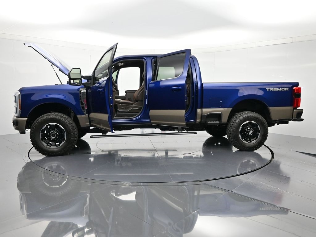 Bluetooth, Back up camera , Ford Connectivity Package (1-Year Included), Internet access capable: 5G Modem - Ford Connectivity Package, Order Code 710A (Flow-Through Console, Radio: B&O Unleashed Sound System by Bang & Olufsen, SiriusXM with 360L, SYNC 4 with Enhanced Voice Recognition, Unique King Ranch Leather 40/Console/40 Seats, and Wheels: 20" Bright Machined Aluminum), 4WD, 14 Speakers, 4-Wheel Disc Brakes, 410 Amp Dual Alternators, ABS brakes, Adjustable pedals, Air Conditioning, All-Weather Floor Mats, Alloy wheels, AM/FM radio: SiriusXM with 360L, Auto High-beam Headlights, Auto tilt-away steering wheel, Auto-dimming Rear-View mirror, Automatic temperature control, Brake assist, Compass, Delay-off headlights, Driver door bin, Driver vanity mirror, Dual front impact airbags, Dual front side impact airbags, Electronic Stability Control, Emergency communication system: SYNC 4 911 Assist, Front anti-roll bar, Front Bucket Seats, Front Center Armrest, Front dual zone A/C, Front fog lights, Front License Plate Bracket, Front reading lights, Fully automatic headlights, Garage door transmitter, Heads-Up Display, Heated door mirrors, Heated front seats, Heated rear seats, Heated steering wheel, Illuminated entry, Leather steering wheel, Low tire pressure warning, Memory seat, Navigation system: Connected Navigation, Outside temperature display, Overhead airbag, Overhead console, Panic alarm, Passenger door bin, Passenger vanity mirror, Pedal memory, Power door mirrors, Power driver seat, Power passenger seat, Power steering, Power windows, Rain sensing wipers, Rapid-Heat Supplemental Cab Heater, Rear reading lights, Rear seat center armrest, Rear step bumper, Rear window defroster, Remote keyless entry, SecuriCode Keyless Entry Keypad (driver's Side), Security system, SiriusXM with 360L (3-Year Plan), Speed control, Split folding rear seat, Steering wheel memory, Steering wheel mounted A/C controls, Steering wheel mounted audio controls, Tachometer, Telescoping steering wheel, Tilt steering wheel, Traction control, Trip computer, Turn signal indicator mirrors, Upfitter Switches (6), Variably intermittent wipers, and Ventilated front seats.