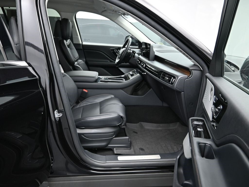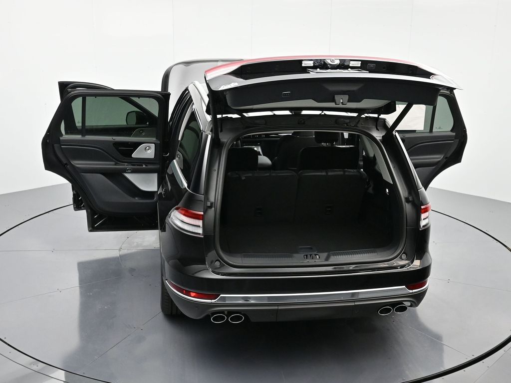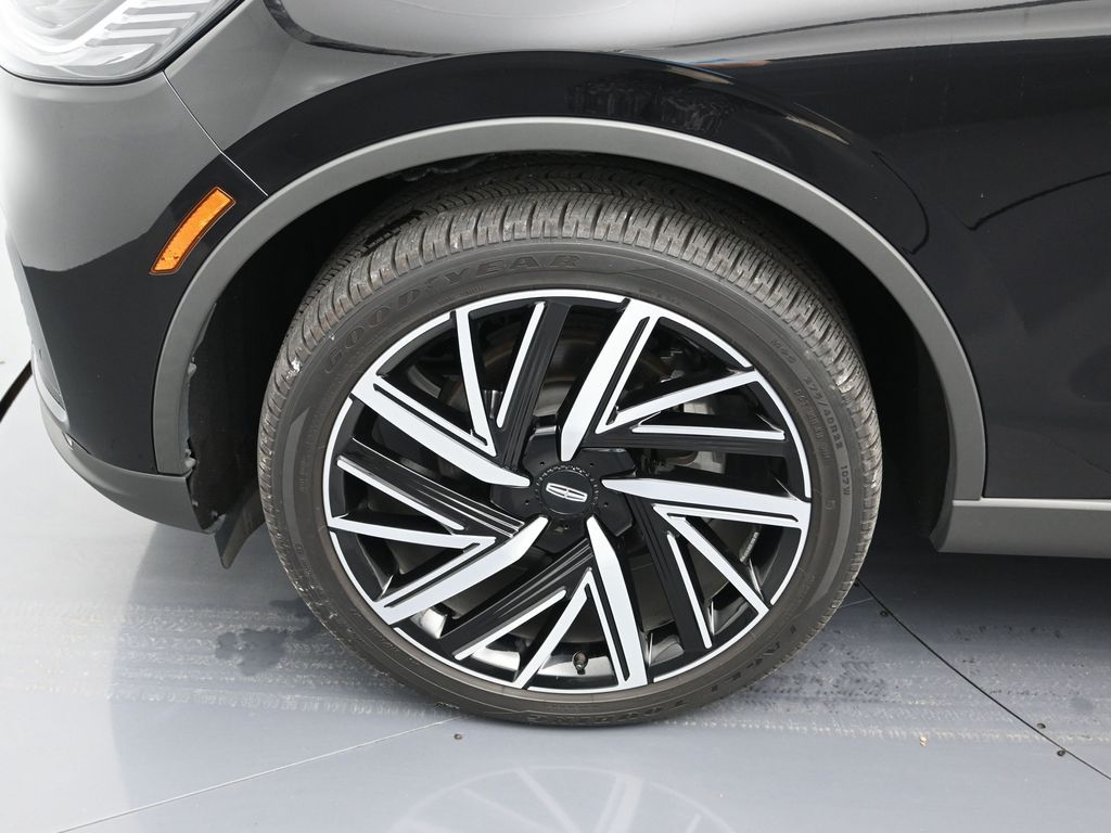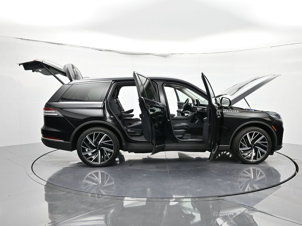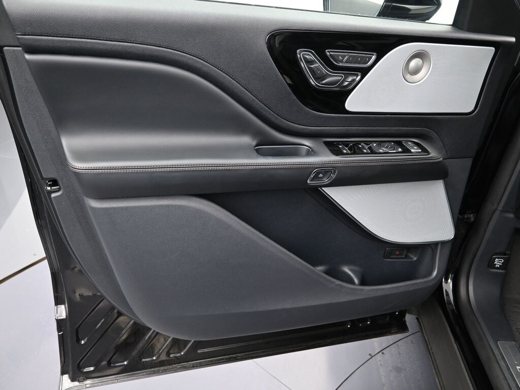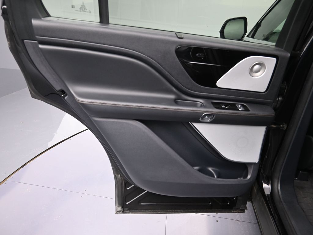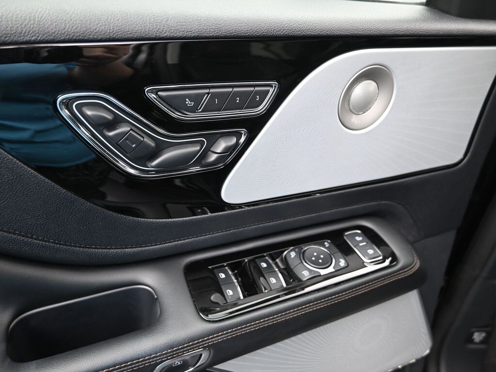 Bluetooth, Back up camera , 14 Speakers, 3rd row seats: split-bench, 4-Wheel Disc Brakes, 40/Mini Console/40 Dual Captain's Chairs, ABS brakes, Adaptive suspension, Air Conditioning, Alloy wheels, AM/FM radio: SiriusXM, Apple CarPlay/Android Auto, Audio memory, Auto High-beam Headlights, Auto-dimming door mirrors, Auto-dimming Rear-View mirror, Automatic temperature control, Brake assist, Bumpers: body-color, Compass, Delay-off headlights, Driver door bin, Driver vanity mirror, Dual front impact airbags, Dual front side impact airbags, Electronic Stability Control, Four wheel independent suspension, Front anti-roll bar, Front Bucket Seats, Front Center Armrest, Front dual zone A/C, Front reading lights, Fully automatic headlights, Garage door transmitter, Heads-Up Display, Heated door mirrors, Heated front seats, Heated steering wheel, HVAC memory, Illuminated entry, Knee airbag, Leather steering wheel, Lincoln BlueCruise Equipped (4-Years Included), Lincoln Digital Experience, Low tire pressure warning, Memory seat, Navigation system: Connected Navigation (1-year trial), Occupant sensing airbag, Outside temperature display, Overhead airbag, Overhead console, Panic alarm, Passenger door bin, Passenger vanity mirror, Power door mirrors, Power driver seat, Power Liftgate, Power moonroof: Panoramic Vista Roof, Power passenger seat, Power steering, Power windows, Premium Lthr Heated/Ventilated Fnt Captain's Chairs, Radio data system, Radio: Revel Audio System w/14 Speakers, Rain sensing wipers, Rear air conditioning, Rear anti-roll bar, Rear audio controls, Rear dual zone A/C, Rear reading lights, Rear window defroster, Rear window wiper, Remote keyless entry, Security system, SiriusXM, Speed control, Speed-Sensitive Wipers, Split folding rear seat, Spoiler, Steering wheel memory, Steering wheel mounted A/C controls, Steering wheel mounted audio controls, Tachometer, Telescoping steering wheel, Tilt steering wheel, Traction control, Trip computer, Turn signal indicator mirrors, Variably intermittent wipers, Ventilated front seats, and Wheels: 21" Bright-Machined Aluminum.