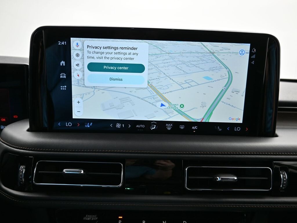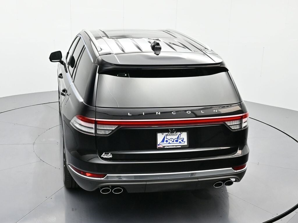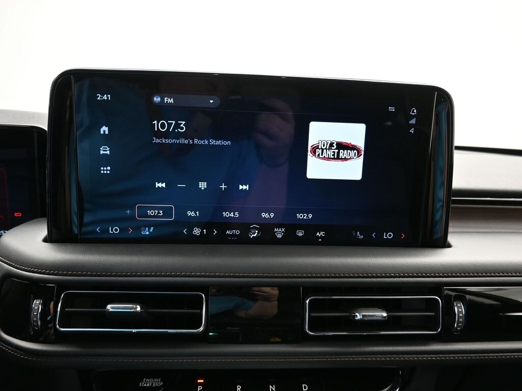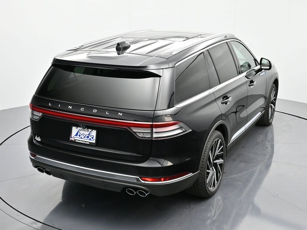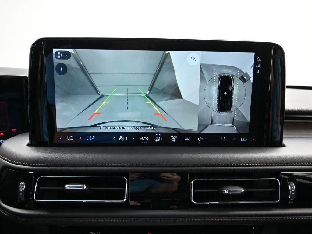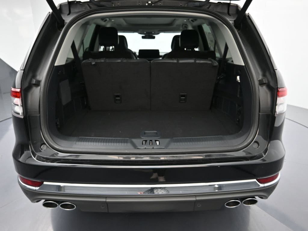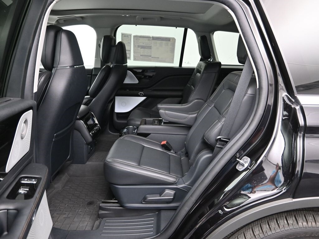 Bluetooth, Back up camera , 14 Speakers, 3rd row seats: split-bench, 4-Wheel Disc Brakes, 40/Mini Console/40 Dual Captain's Chairs, ABS brakes, Adaptive suspension, Air Conditioning, Alloy wheels, AM/FM radio: SiriusXM, Apple CarPlay/Android Auto, Audio memory, Auto High-beam Headlights, Auto-dimming door mirrors, Auto-dimming Rear-View mirror, Automatic temperature control, Brake assist, Bumpers: body-color, Compass, Delay-off headlights, Driver door bin, Driver vanity mirror, Dual front impact airbags, Dual front side impact airbags, Electronic Stability Control, Four wheel independent suspension, Front anti-roll bar, Front Bucket Seats, Front Center Armrest, Front dual zone A/C, Front reading lights, Fully automatic headlights, Garage door transmitter, Heads-Up Display, Heated door mirrors, Heated front seats, Heated steering wheel, HVAC memory, Illuminated entry, Knee airbag, Leather steering wheel, Lincoln BlueCruise Equipped (4-Years Included), Lincoln Digital Experience, Low tire pressure warning, Memory seat, Navigation system: Connected Navigation (1-year trial), Occupant sensing airbag, Outside temperature display, Overhead airbag, Overhead console, Panic alarm, Passenger door bin, Passenger vanity mirror, Power door mirrors, Power driver seat, Power Liftgate, Power moonroof: Panoramic Vista Roof, Power passenger seat, Power steering, Power windows, Premium Lthr Heated/Ventilated Fnt Captain's Chairs, Radio data system, Radio: Revel Audio System w/14 Speakers, Rain sensing wipers, Rear air conditioning, Rear anti-roll bar, Rear audio controls, Rear dual zone A/C, Rear reading lights, Rear window defroster, Rear window wiper, Remote keyless entry, Security system, SiriusXM, Speed control, Speed-Sensitive Wipers, Split folding rear seat, Spoiler, Steering wheel memory, Steering wheel mounted A/C controls, Steering wheel mounted audio controls, Tachometer, Telescoping steering wheel, Tilt steering wheel, Traction control, Trip computer, Turn signal indicator mirrors, Variably intermittent wipers, Ventilated front seats, and Wheels: 21" Bright-Machined Aluminum.