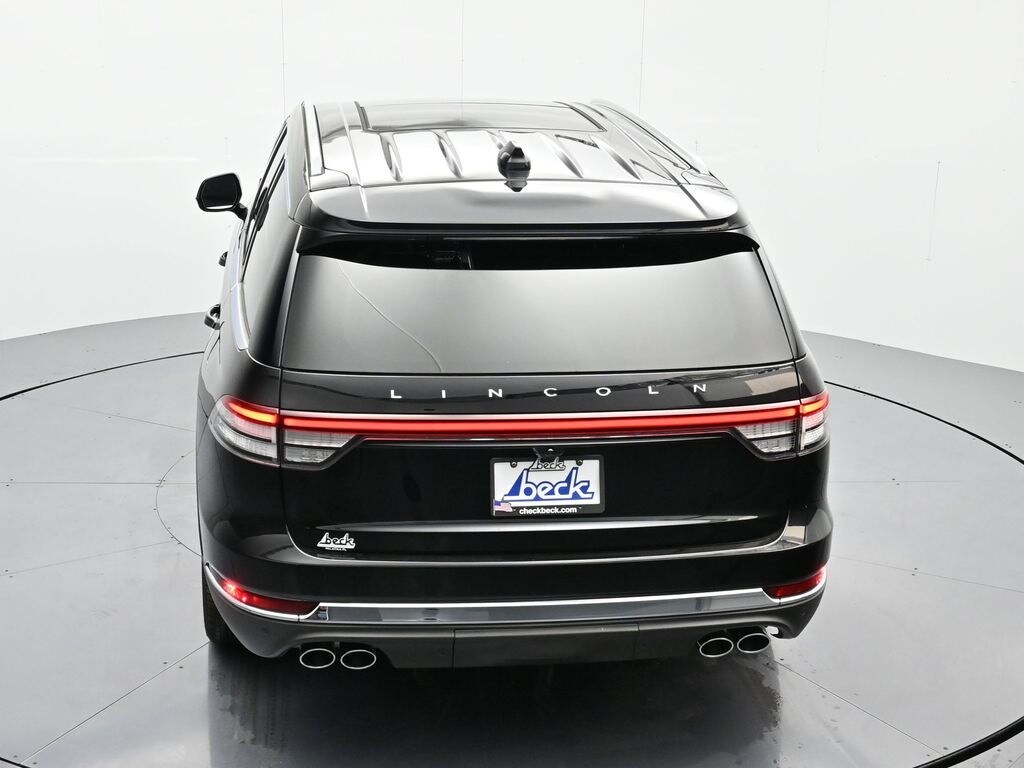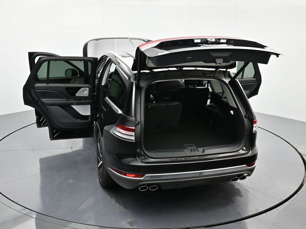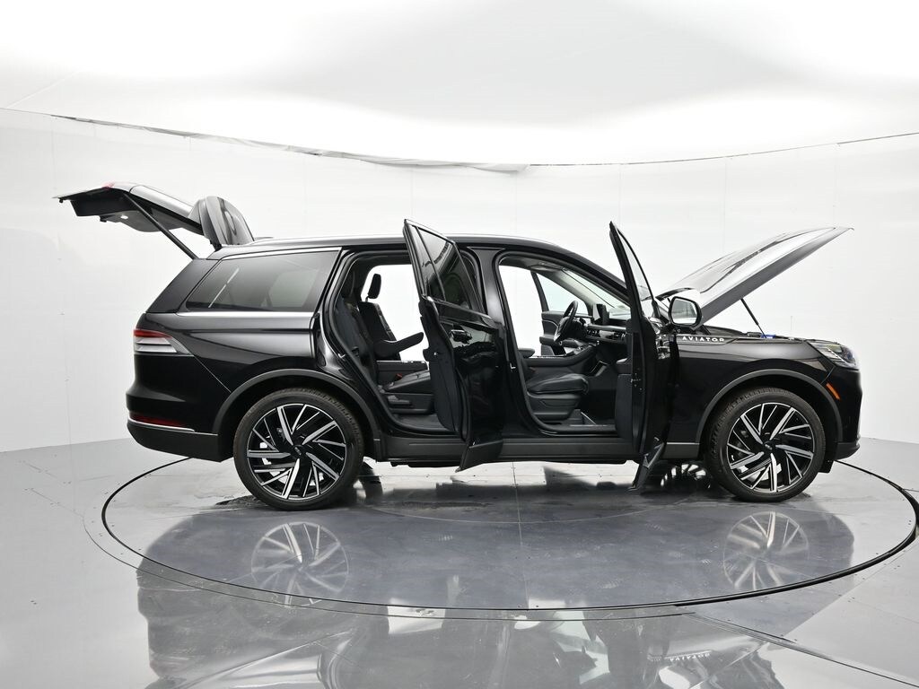 Bluetooth, Back up camera , 14 Speakers, 3rd row seats: split-bench, 4-Wheel Disc Brakes, 40/Mini Console/40 Dual Captain's Chairs, ABS brakes, Adaptive suspension, Air Conditioning, Alloy wheels, AM/FM radio: SiriusXM, Apple CarPlay/Android Auto, Audio memory, Auto High-beam Headlights, Auto-dimming door mirrors, Auto-dimming Rear-View mirror, Automatic temperature control, Brake assist, Bumpers: body-color, Compass, Delay-off headlights, Driver door bin, Driver vanity mirror, Dual front impact airbags, Dual front side impact airbags, Electronic Stability Control, Four wheel independent suspension, Front anti-roll bar, Front Bucket Seats, Front Center Armrest, Front dual zone A/C, Front reading lights, Fully automatic headlights, Garage door transmitter, Heads-Up Display, Heated door mirrors, Heated front seats, Heated steering wheel, HVAC memory, Illuminated entry, Knee airbag, Leather steering wheel, Lincoln BlueCruise Equipped (4-Years Included), Lincoln Digital Experience, Low tire pressure warning, Memory seat, Navigation system: Connected Navigation (1-year trial), Occupant sensing airbag, Outside temperature display, Overhead airbag, Overhead console, Panic alarm, Passenger door bin, Passenger vanity mirror, Power door mirrors, Power driver seat, Power Liftgate, Power moonroof: Panoramic Vista Roof, Power passenger seat, Power steering, Power windows, Premium Lthr Heated/Ventilated Fnt Captain's Chairs, Radio data system, Radio: Revel Audio System w/14 Speakers, Rain sensing wipers, Rear air conditioning, Rear anti-roll bar, Rear audio controls, Rear dual zone A/C, Rear reading lights, Rear window defroster, Rear window wiper, Remote keyless entry, Security system, SiriusXM, Speed control, Speed-Sensitive Wipers, Split folding rear seat, Spoiler, Steering wheel memory, Steering wheel mounted A/C controls, Steering wheel mounted audio controls, Tachometer, Telescoping steering wheel, Tilt steering wheel, Traction control, Trip computer, Turn signal indicator mirrors, Variably intermittent wipers, Ventilated front seats, and Wheels: 21" Bright-Machined Aluminum.