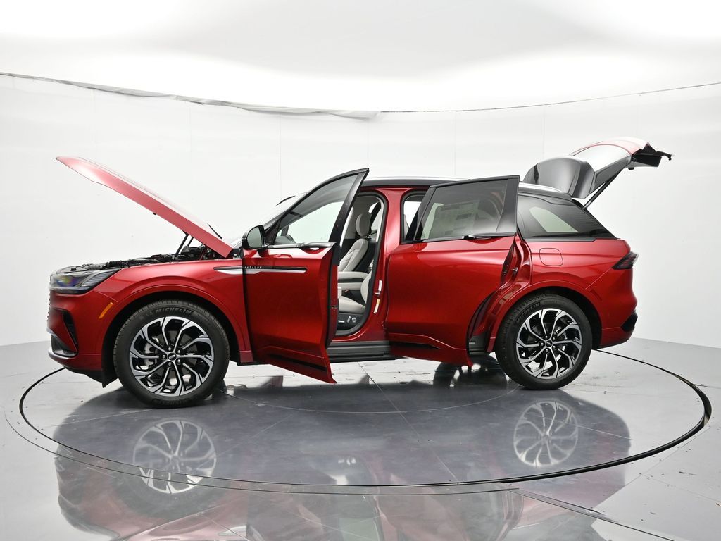 Bluetooth, Back up camera , Equipment Group 202A Reserve II (110V Power Converter, Auto Air Refresh, BlueCruise Equipped (4-Years Included), Digital Scent, Hands-Free Power Liftgate, Lincoln App, Lincoln Digital Experience, Panoramic Vista Roof with Powershade, Premium Leather Trimmed Captain's Chairs, Radio: AM/FM Revel Audio System, Rear Heated Seats with Switch Control, and SiriusXM with 360L), Lincoln Connectivity Package, 10 Speakers, 4-Wheel Disc Brakes, ABS brakes, Adaptive suspension, Air Conditioning, Alloy wheels, AM/FM radio: SiriusXM with 360L, Apple CarPlay/Android Auto, Auto High-beam Headlights, Auto tilt-away steering wheel, Auto-dimming Rear-View mirror, Automatic temperature control, Brake assist, Bumpers: body-color, Compass, Delay-off headlights, Driver door bin, Driver vanity mirror, Dual front impact airbags, Dual front side impact airbags, Electronic Stability Control, Emergency communication system: 911 Assist, Exterior Parking Camera Rear, Four wheel independent suspension, Front anti-roll bar, Front Bucket Seats, Front Center Armrest w/Storage, Front dual zone A/C, Front reading lights, Fully automatic headlights, Garage door transmitter, Heated door mirrors, Heated front seats, Heated steering wheel, Illuminated entry, Knee airbag, Leather steering wheel, Low tire pressure warning, Memory seat, Navigation System, Occupant sensing airbag, Outside temperature display, Overhead airbag, Overhead console, Panic alarm, Passenger door bin, Passenger vanity mirror, Power door mirrors, Power driver seat, Power Liftgate, Power passenger seat, Power steering, Power windows, Radio data system, Rain sensing wipers, Rear anti-roll bar, Rear reading lights, Rear seat center armrest, Rear window defroster, Rear window wiper, Remote keyless entry, Security system, Speed control, Speed-sensing steering, Speed-Sensitive Wipers, Split folding rear seat, Spoiler, Steering wheel memory, Steering wheel mounted audio controls, Tachometer, Telescoping steering wheel, Tilt steering wheel, Traction control, Trip computer, Turn signal indicator mirrors, Variably intermittent wipers, and Ventilated front seats.