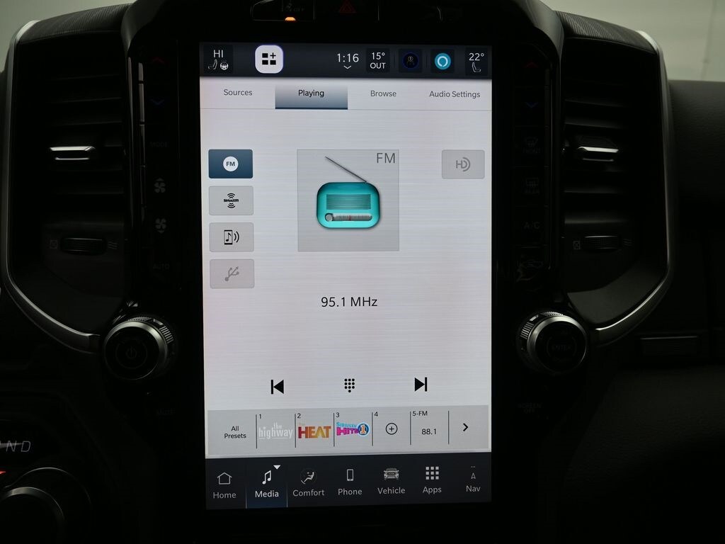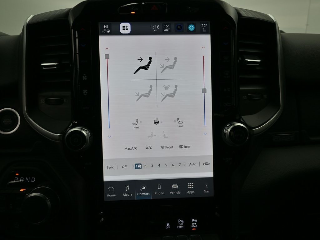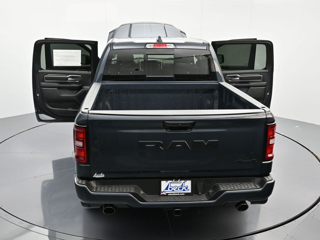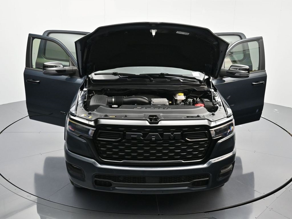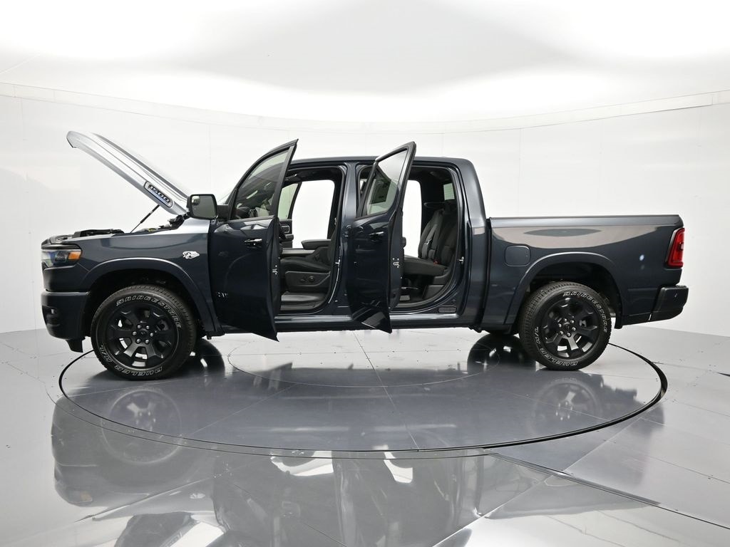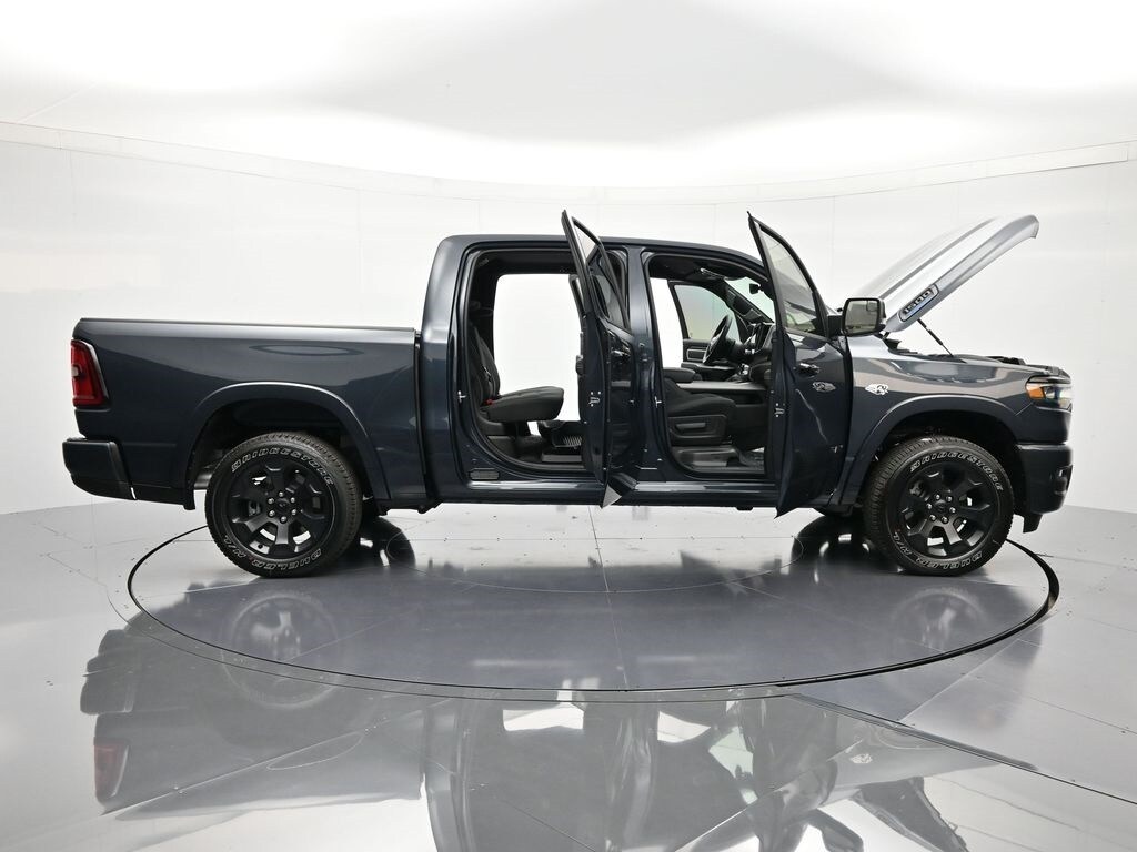 Big Horn Level 2 Equipment Group (115V Auxiliary Power Outlet, 115V Auxiliary Rear Power Outlet, 12" Touchscreen Display, 2nd Row in Floor Storage Bins, 3 Rear Seat Head Restraints, 4 Way Front Headrests, 400W Inverter, 4G LTE Wi-Fi Hot Spot, 9 Amplified Speakers with Subwoofer, Air Conditioning ATC with Dual Zone Control, Apple CarPlay, Auto Power-Folding Mirrors, Auto-Dimming Exterior Driver Mirror, Auto-Dimming Rear-View Mirror, Black Exterior Mirrors, Black Premium Power Mirrors, Body Color Fender Flares, Bucket Seats, Center Console Parts Module, Cluster 7.0" TFT Color Display, Configurable Drive Mode, Connected Travel and Traffic Services, Connectivity - US/Canada, Convex Wide-Angle Exterior Mirror Insert, Deluxe Cloth Bucket Seats, Disassociated Touchscreen Display, Exterior Mirrors Courtesy Lamps, Exterior Mirrors with Heating Element, Exterior Mirrors with Supplemental Signals, Front Seat Back Map Pockets, Full Length Floor Console, Global Telematics Box Module, Glove Box Lamp, Google Android Auto, GPS Antenna Input, GPS Navigation, HD Radio, Heated Front Seats, Heated Steering Wheel, Integrated Center Stack Radio, Integrated Voice Command with Bluetooth, Leather Wrapped Steering Wheel, LED Dome Lamp with on/Off Switch, LED Footwell Lighting, Manual Adjust 4-Way Front Passenger Seat, Media Hub with 2 Charge Only USBs, Overhead LED Lamps, Power 2-Way Driver Lumbar Adjust, Power Adjust 8-Way Driver Seat, Power Adjustable Pedals, Premium Overhead Console, Radio: Uconnect 5 Navigation with 12.0" Display, Rear 60/40 Folding Seat, Rear Center Armrest, Rear Power Sliding Window, Rear Window Defroster, Remote Tailgate Release, Security Alarm, SiriusXM Radio Service, SiriusXM with 360L, Steering Wheel Mounted Audio Controls, Sun Visors with Illuminated Vanity Mirrors, Universal Garage Door Opener, and USB Host Flip), Night Edition (Accent Color Door Handles, Accent Color Premium Power Mirrors, Accent Color Tailgate Handle, Anti-Spin Differential Rear Axle, Black Exterior Truck Badging, Black Headlamp Bezels, Black Interior Accents, Black Painted Exterior Mirrors Caps, Black Tail Lamp Bezels, Body Color Front Bumper, Body Color Rear Bumper with Step Pads, Dual Exhaust with Black Tips, Grille Black Surround Black Mesh, RAM Grille Badge - Black, and Wheels: 20" x 9.0" Aluminum Painted Clad), Quick Order Package 23Z Big Horn, Quick Order Package 27Z Big Horn, 4-Wheel Disc Brakes, 48V Belt Starter Generator, 6 Speakers, ABS brakes, Air Conditioning, Alloy wheels, AM/FM radio, Apple CarPlay/Android Auto, Auto High-beam Headlights, Brake assist, Bumpers: chrome, Cloth Bucket Seats, Compass, Delay-off headlights, Driver door bin, Dual front impact airbags, Dual front side impact airbags, Electronic Stability Control, Front anti-roll bar, Front Bucket Seats, Front Center Armrest w/Storage, Front fog lights, Front reading lights, Front wheel independent suspension, Fully automatic headlights, Heated door mirrors, Illuminated entry, Low tire pressure warning, Manual Adjust 4-Way Driver Seat, Manual Folding Exterior Mirrors, MOPAR Front and Rear Rubber Floor Mats, Occupant sensing airbag, Outside temperature display, Overhead airbag, Overhead console, Panic alarm, ParkView Rear Back-Up Camera, Passenger door bin, Passenger vanity mirror, Power door mirrors, Power steering, Power windows, Radio data system, Radio: Uconnect 5 W with 8.4" Display, RAM Grille Badge - Chrome, Rear anti-roll bar, Rear step bumper, Remote keyless entry, Speed control, Supplier Part Tracking (J-1), Tachometer, Telescoping steering wheel, Tilt steering wheel, Traction control, Trip computer, Variably intermittent wipers, and Voltmeter.