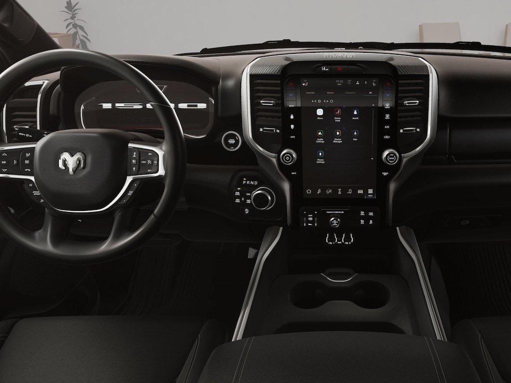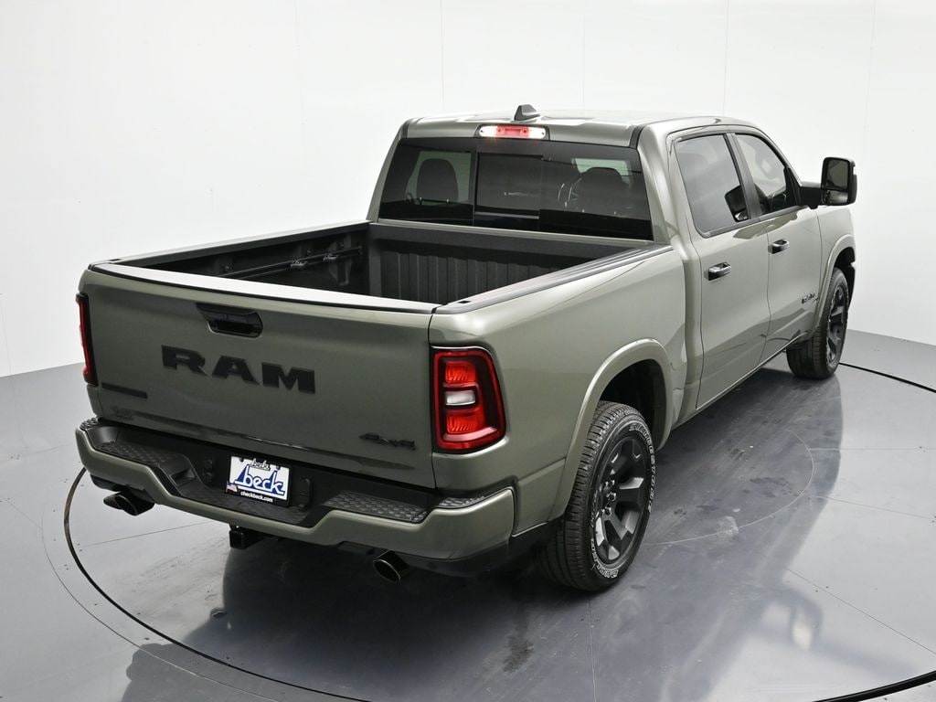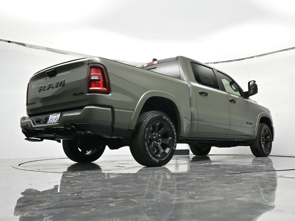 Bed Utility Group (Exterior 115V AC Outlet, MOPAR 4 Adjustable Cargo Tie-Down Hooks, and Pick-Up Box Lighting), Big Horn Level 2 Equipment Group (115V Auxiliary Power Outlet, 115V Auxiliary Rear Power Outlet, 12" Touchscreen Display, 3 Rear Seat Head Restraints, 4 Way Front Headrests, 400W Inverter, 4G LTE Wi-Fi Hot Spot, Apple CarPlay, Auto Power-Folding Mirrors, Auto-Dimming Exterior Driver Mirror, Auto-Dimming Rear-View Mirror, Black Exterior Mirrors, Black Premium Power Mirrors, Body Color Fender Flares, Bucket Seats, Center Console Parts Module, Cluster 7.0" TFT Color Display, Configurable Drive Mode, Connectivity - US/Canada, Convex Wide-Angle Exterior Mirror Insert, Deluxe Cloth Bucket Seats, Disassociated Touchscreen Display, Exterior Mirrors Courtesy Lamps, Front Seat Back Map Pockets, Full Length Floor Console, Glove Box Lamp, Google Android Auto, GPS Antenna Input, GPS Navigation, HD Radio, Heated Front Seats, Heated Steering Wheel, Integrated Center Stack Radio, Leather Wrapped Steering Wheel, LED Footwell Lighting, Manual Adjust 4-Way Front Passenger Seat, Overhead LED Lamps, Power 2-Way Driver Lumbar Adjust, Power Adjust 8-Way Driver Seat, Power Adjustable Pedals, Premium Overhead Console, Rear 60/40 Folding Seat, Rear Center Armrest, Rear Power Sliding Window, Rear Window Defroster, Remote Tailgate Release, Security Alarm, SiriusXM Radio Service, Steering Wheel Mounted Audio Controls, Universal Garage Door Opener, and USB Host Flip), Night Edition (Accent Color Door Handles, Accent Color Premium Power Mirrors, Accent Color Tailgate Handle, Anti-Spin Differential Rear Axle, Black Exterior Truck Badging, Black Headlamp Bezels, Black Interior Accents, Black Painted Exterior Mirrors Caps, Black Tail Lamp Bezels, Body Color Front Bumper, Grille Black Surround Black Mesh, RAM Grille Badge - Black, and Wheels: 20" x 9.0" Aluminum Painted Clad), Quick Order Package 21Z Big Horn, Towing Technology Group (Trailer Hitch Line-Up Assist), 12-Way/1-Way Trailer Connector, 4-Wheel Disc Brakes, 48V Belt Starter Generator, 6 Speakers, ABS brakes, Air Conditioning, Alloy wheels, AM/FM radio, Apple CarPlay/Android Auto, Auto High-beam Headlights, Black Trailer Tow Power Mirrors, Brake assist, Bumpers: chrome, Cloth Bucket Seats, Cluster 12" TFT Color Display, Compass, Delay-off headlights, Driver door bin, Dual front impact airbags, Dual front side impact airbags, Electronic Stability Control, Front anti-roll bar, Front Bucket Seats, Front Center Armrest w/Storage, Front fog lights, Front reading lights, Front wheel independent suspension, Fully automatic headlights, Heated door mirrors, Illuminated entry, Low tire pressure warning, Manual Adjust 4-Way Driver Seat, Manual Folding Exterior Mirrors, Mirror Clearance/Running Lights, Occupant sensing airbag, Outside temperature display, Overhead airbag, Overhead console, Panic alarm, ParkView Rear Back-Up Camera, Passenger door bin, Passenger vanity mirror, Power door mirrors, Power steering, Power windows, Power-Adjustable Convex Aux Mirrors, Radio data system, RAM Grille Badge - Chrome, Rear anti-roll bar, Rear step bumper, Rear Wheelhouse Liners, Remote keyless entry, Speed control, Supplier Part Tracking (J-1), Surround View Camera System, Tachometer, Telescoping steering wheel, Tilt steering wheel, Traction control, Trailer Brake Control, Trailer Reverse Steering Control, Trailer Tire Pressure Monitoring System, Trailer Tow Mirrors, Trip computer, Variably intermittent wipers, Voltmeter, and Wheels: 18" x 8" Cast-Aluminum Painted.