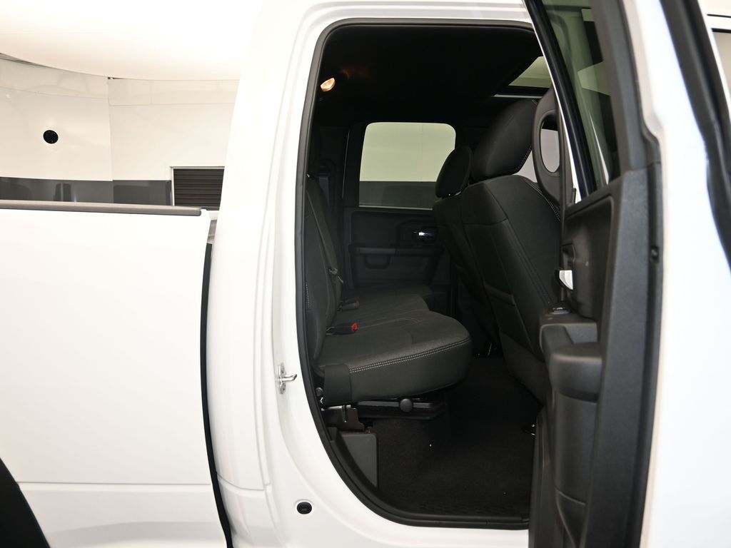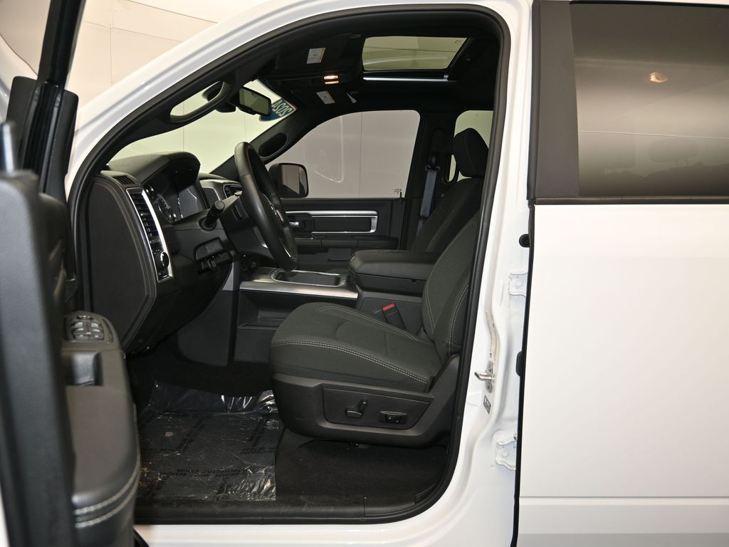 Designed with both style and function in mind, the Warlock package sets this Ram 1500 Classic apart. Featuring a bold, blacked-out exterior with 20-inch high-gloss black aluminum wheels, this truck exudes a commanding presence on the road. The interior is equally impressive, with premium cloth bucket seats, a leather-wrapped steering wheel, and a 7-inch color display cluster.